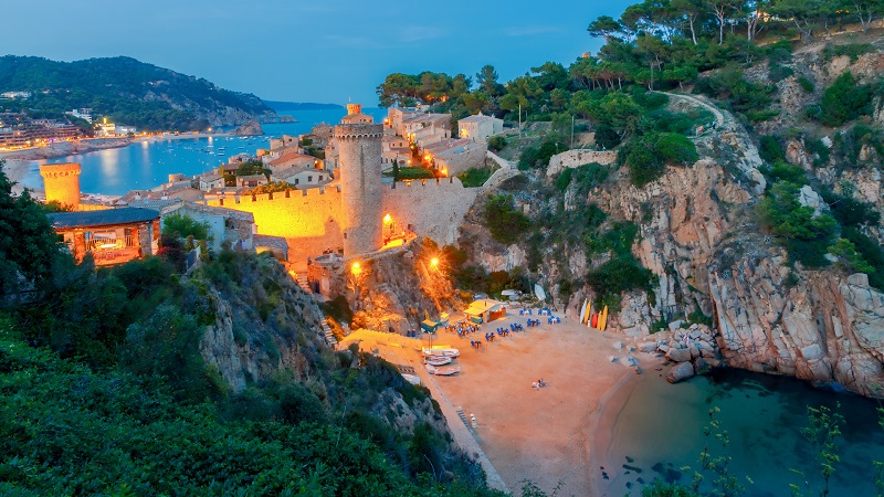 En Cataluña, la historia se respira en cada rincón. Empieza tu recorrido en el Castillo de Tossa de Mar, una fortaleza del siglo XII que aún vigila las aguas turquesas de la Costa Brava. Camina por sus murallas, escucha el murmullo del mar y deja que la brisa te transporte a tiempos de pescadores y piratas.