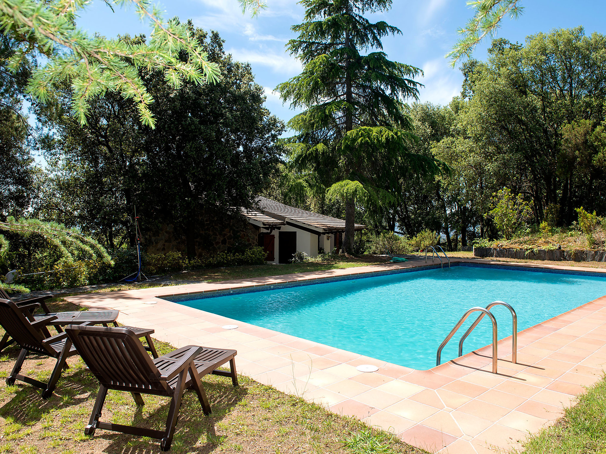 Casa "Els Refugis", agradable, rústica de 2 plantas, rodeada de árboles. En las afueras de la localidad, a 3 km del centro de Sant Esteve de Palautordera, lugar tranquilo en una pendiente. Privado: terreno en estado natural, piscina (12 x 6 m, 110 - 190 cm de profundidad, 15.05.-30.10.). Ducha exterior. Acceso durante 2 m. Acceso por escaleras (15 escalones) hasta la casa. Tienda de comestibles 3 km, supermercado 3 km, restaurante 3 km, bar 3 km, estación de tren "Santa Maria de Palautordera" 5 km. Atracciones en los alrededores: Parque Natural del Montseny. A tener en cuenta: coche indispensable. Grupos de jóvenes sólo bajo petición. Vecindario muy sensible a ruidos. Se ruega respetar la tranquilidad y normas de buen comportamiento.