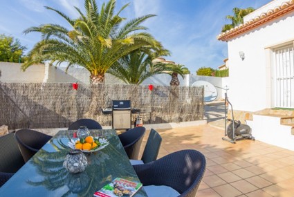 DISTRIBUCIÓN: Se distribuye en una única planta, por la cual accedemos por unas escaleras. En ella encontramos tres dormitorios (dos con camas dobles y uno con camas individuales) y dos baños (uno en suite y con bañera y otro con ducha). Dos de los dormitorios poseen Aire Acondicionado. Disponemos de una cocina independiente totalmente equipada y de un amplio y acogedor salón-comedor con Aire Acondicionado y chimenea. La villa esta totalmente reformada. EXTERIOR: Tiene una parcela de 1000m2 con un cuidado jardín de palmeras y arboles. Posee una bonita terraza con modernos muebles de jardín y una piscina donde disfrutar de un baño refrescante en los días mas calurosos del verano. Encontramos también una zona de barbacoa amueblada con una gran mesa donde tener una comida agradable junto a los amigos o familia. La parcela dispone de un parking cubierto para aparcar nuestro vehículo. Podemos acceder a un solárium que tiene la villa y contemplar el Parque Natural del Peñón De Ifach. UBICACIÓN: Se encuentra en una urbanización tranquila y cerca de el mar y la playa. A tan solo 1 Km de la magnifica playa de arena fina de La Fosa, donde encontramos multitud de restaurantes y bares. En este municipio disponemos de muchas actividades para hacer, escalada, ciclismo, senderismo y por supuesto todos los deportes relacionados con el agua. OTROS: Aire Acondicionado en dos dormitorios y en el salón. Internet WIFI.