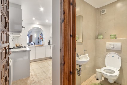La PLANTA BAJA ofrece un espacio exquisitamente decorado, que incluye un acogedor salón-comedor con TV SAT/TDT. La cocina independiente está completamente equipada con fuego de gas y lavavajillas para mayor comodidad. Un dormitorio con dos camas individuales cuenta con un baño en suite con ducha, y además, hay un aseo independiente. En la PLANTA ALTA, dos dormitorios esperan a los huéspedes: uno con dos camas individuales y un baño en suite con ducha, y el otro con una cama de matrimonio y un baño en suite con bañera. Desde el dormitorio principal, se accede a un hermoso solárium, ideal para tomar el sol y disfrutar de las impresionantes vistas. Todos los dormitorios y el salón disponen de aire acondicionado para mayor confort.