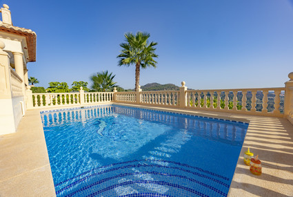 Villa en Calpe para 6 pers., piscina privada, vistas al mar, AC, WiFi, terrazas y parking seguro.Disponibilidad