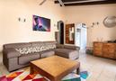 - Gran salón con aire acondicionado, ventilador de techo, Sat-TV y acceso a la terraza de la piscina por grandes puertas correderas