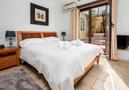 - Dormitorio principal 150x200, baño privado con aire acondicionado, TV, cama doble grande y acceso al patio.