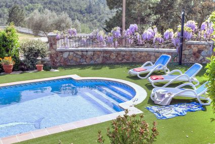 Aiguaviva Parc: Villa "Maria Eva", confortable, lujosa de 2 plantas. En la periferia, a 9 km del centro de lloret de mar, lugar soleado, a 9 km del mar, a 9 km de la playa. Privado: bonito jardín para relajarse, piscina rectangular (9 x 4 m, 220 cm de profundidad, 05.05. y 18.10.). Muebles de jardín, aparcamiento junto a la casa. Tienda 9 km, supermercado 9 km, restaurante 9 km, bar 2 km, panadería 500 m. Atracciones en los alrededores: waterWorld Lloret 8 km, Marinland Blanes 17 km, Pueblo medieval de Tossa de Mar 20 km. A tener en cuenta: coche recomendable. Adecuado para familias. Grupos de jóvenes sólo bajo petición.