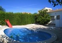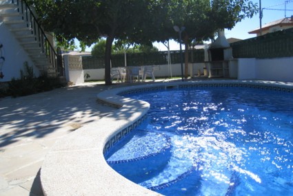 Chalet independiente de planta baja con piscina y jardin privados situado en una zona residencial tranquila. Bonita terraza cubierta. Aire acondicionado en el dormitorio principal y T.V. parabolica.