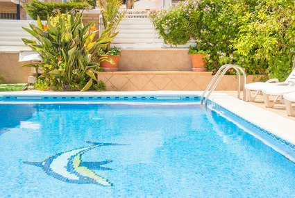 - Llegará a la piscina mediante una pequeña escalera hacia abajo.