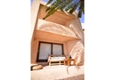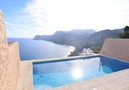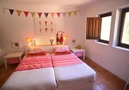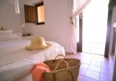 1 dormitorio doble con dos camas individuales, cuarto de baño completa con ducha y terraza privada con espectaculares vistas al mar, a la bahía y Formentera. Aire Acondicionado.