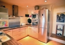 Amplia cocina abierta muy bien equipada (nevera, congelador, horno, microondas, lavavajillas…) con acceso directo a la terraza.