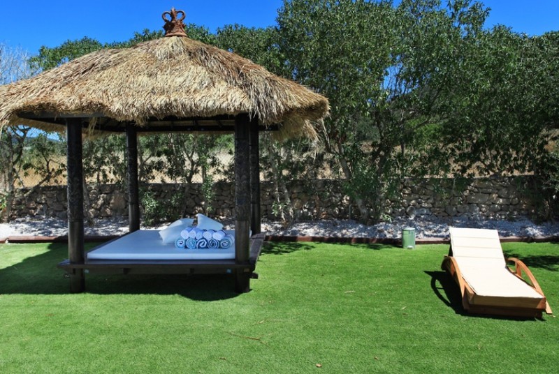 La piscina mide 9 x 4 metros y tiene zona de barbacoa, zona de descanso con muebles exteriores y tumbonas.
