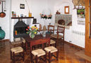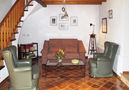 Sala de estar(planta baja, mosquitera): sofá, bancos, chimenea (abierta). De la sala de estar escalera directa al dormitorio nº 3.